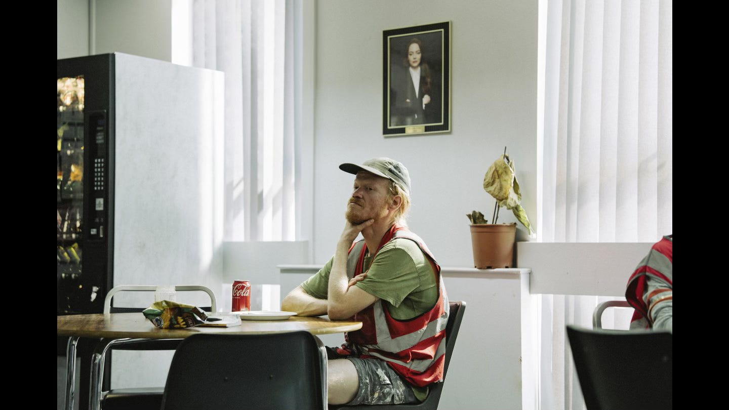 Auch Jesse Plemons ist in Topform. Er spielt jene Art von unerträglichem Verschwörungstheoretiker, die man nur zu gut kennt: Dieser selbstüberzeugte Blick, wenn er mit seiner ausführlichen Recherchearbeit prahlt, und wie er sich dann durch die verschwitzten Haare geht... Selbstverständlich macht er genau das, was er an Stones Charakter kritisiert, und manipuliert die Schwächeren (also seinen Cousin Don). Sein vermeintliches Wissen? Hat er komplett aus dem Internet. In einer starken Szene sieht man, wie er sich auf dem Weg zur Arbeit von irgendwelchen Podcasts zuballern lässt – und dass Stones Figur ein Alien sein muss, weiß er natürlich durch Instagram-Nachforschungen.