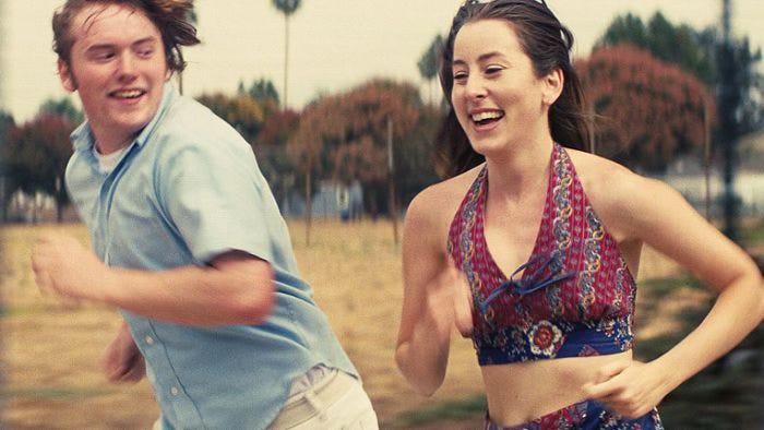 Herrlich-romantisch! Jemand ist beeindruckt von der Macher-Art eines Jungen – von seiner gesund-naiven Weise, die Dinge um sich schweben zu lassen. Gleichzeitig findet sie sein Selbstbewusstsein absolut lächerlich; verliebt sein heißt genervt sein. Dranbleiben und jemandem hinterherrennen, das ist viel realer als ‘Liebe auf den ersten Blick’ oder so ein Quatsch. Gemeinsam nach den Situationen greifen, die einem beim eigenen Selbstwertgefühl helfen: Wasserbetten verkaufen, Brüste anfassen während Paul McCartneys "Let Me Roll It" läuft, DURCH DIE STADT RENNEN. Momente, an die sich womöglich keiner erinnern würde. Und dann macht jemand einen Film darüber.