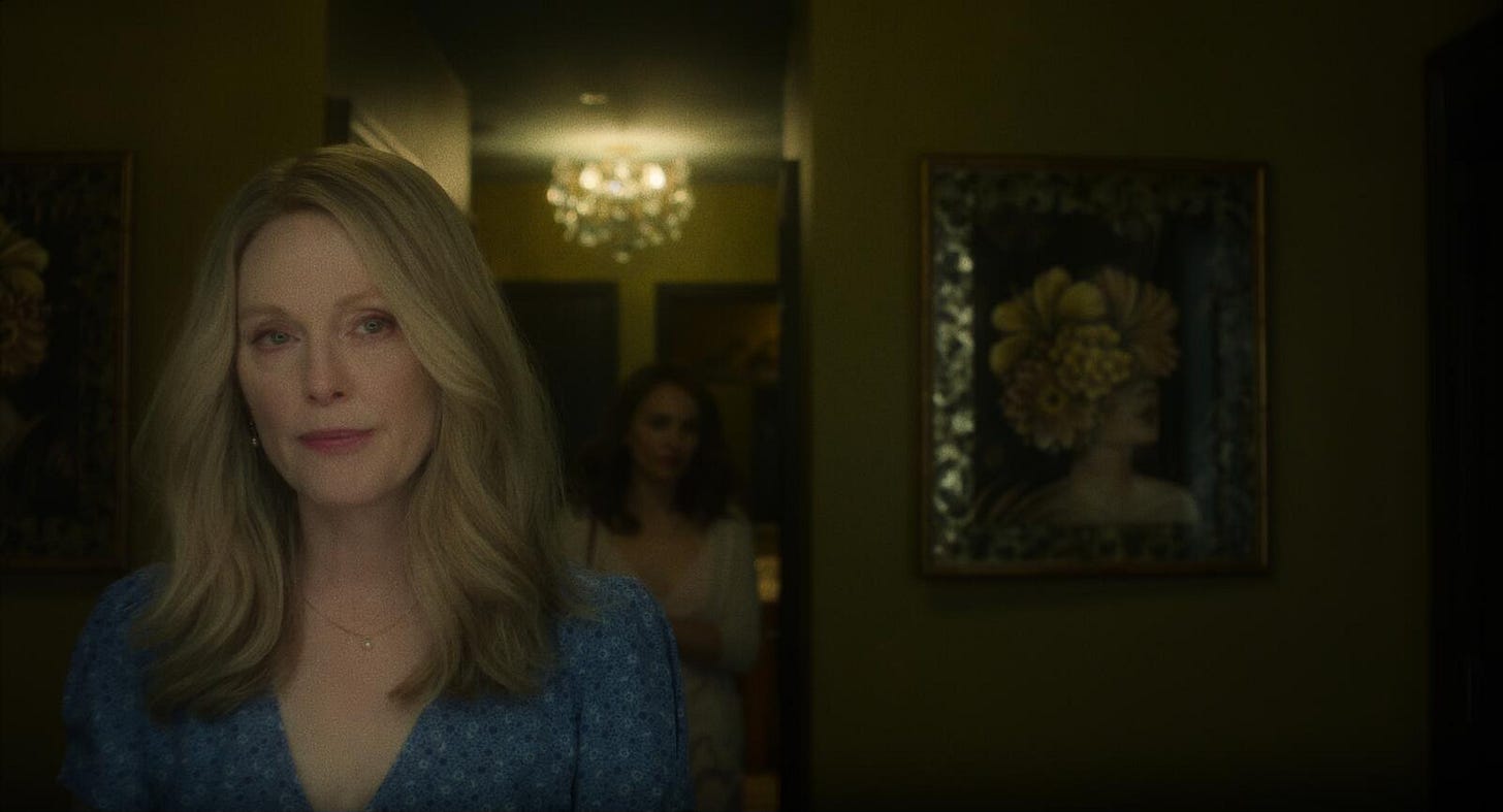 Eine Frau, die solch eine Beziehung eingeht, hat doch bestimmt noch mehr Leichen im Keller. Das muss einfach so sein… oder nicht? Erwarten wir als Zuschauer nur, dass weitere Grausamkeiten aufgedeckt werden – weil das halt ein Film ist, der natürlich Wendungen haben muss–, oder sind unsere Vermutungen berechtigt? Ist es den Figuren gegenüber vielleicht unfair, so zu denken? Tatsächlich fungiert die Schauspielerin Elizabeth, welche Gracie beobachtet und sie daraufhin in einem Film spielen will, als eine Art Avatar für das Publikum, weil sie gewissermaßen (und vermutlich unbewusst) noch mehr würziges Drama finden will; schließlich wird ihr Film dann spannender. Und wir Zuschauer denken: Toi toi toi! Ich hab doch gesagt, hier ist was faul.