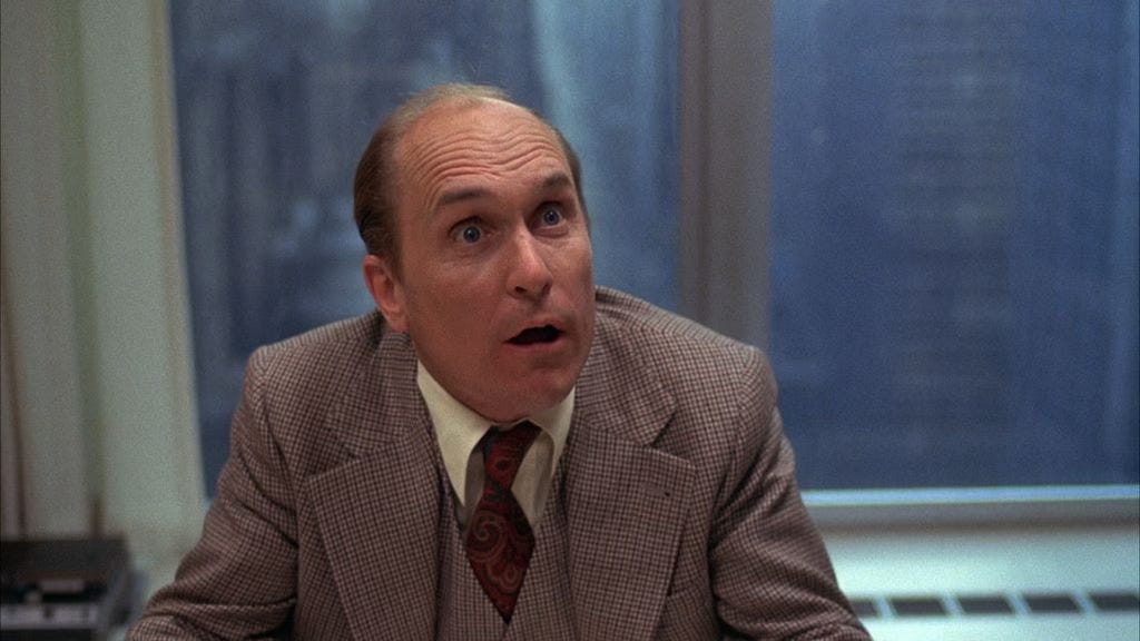 Und die beste Quote – auch das macht Lumet mehrfach deutlich – bringt nunmal das Leid anderer (übrigens: “Fury” hat stolze $211 Millionen eingespielt). Als wäre das eine Selbstverständlichkeit, akzeptieren die UBS-Mitarbeiter, dass Howard Beale anscheinend Selbstmord begehen möchte. On air, versteht sich. Die Menschen schalten ein, lächelnd. Beale klappt zusammen → Applaus. Das war 1976 der Fall und ist 2024 noch realer. Was da gesagt wird? Keine Ahnung… Aber guck mal, der dreht voll durch haha!